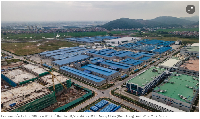 Vào tháng 8, Foxconn - đối tác hàng đầu của Apple, đã ký kết biên bản ghi nhớ thuê lại 50,5 ha đất tại Khu công nghiệp Quang Châu, tỉnh Bắc Giang với tổng mức đầu tư hơn 300 triệu USD, đồng thời sử dụng 30.000 lao động địa phương. Hồi tháng 4/2021, tập đoàn tuyên bố đầu tư 700 triệu USD vào Việt Nam để mở rộng sản xuất.
