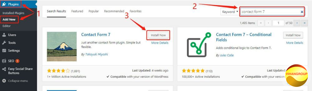Bước 1: Bạn cần cài đặt và tích hợp Contact Form 7 cho website của mình (Lưu ý nếu website của bạn sử dụng Plugin Contact Form 7 mới nhất thì cần phải đăng ký reCaptcha v3 để hoạt động ngầm, đồng thời không gây khó chịu cho người dùng)