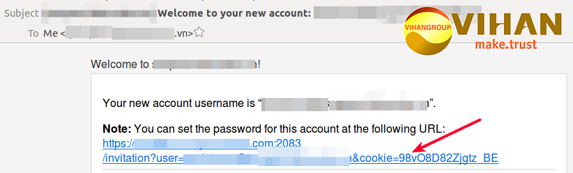 Email chỉ định sẽ nhận được một email như sau và nhấn vào link có trong email để đặt mật khẩu cho email mới tạo này