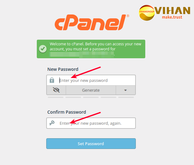 Khi nhấn vào link có sẽ dẫn đến trang để đặt mật khẩu cho email và bắt đầu thiết lập mật khẩu cho email này.