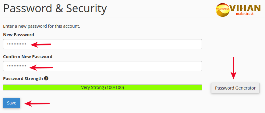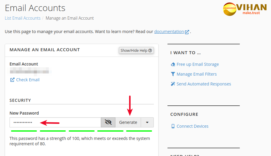 Bạn cũng có thể chọn mục Password Generate để hệ thống tự tạo mật khẩu giúp bạn (chú ý sau khi tạo bạn cần lưu lại mật khẩu này để tránh việc quên mật khẩu)