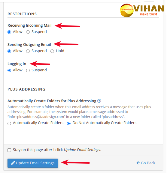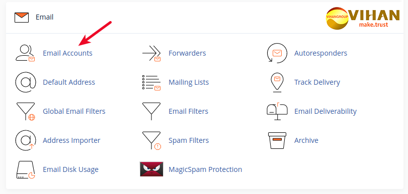 Sau khi đăng nhập thành công, bạn chọn mục Email Accounts
