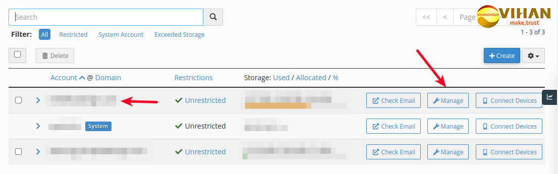 Tương ứng với Email bạn cần thay đổi mật khẩu chọn muc Manage