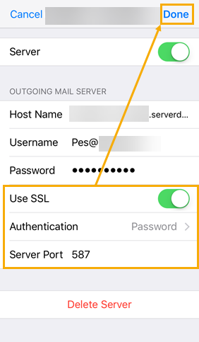Nhấn vào nút Tài khoản ở góc trên bên trái màn hình. Nhấn vào SMTP bên dưới Máy chủ Thư Đi. Nhấn vào tên máy chủ bên dưới Máy chủ Chính .