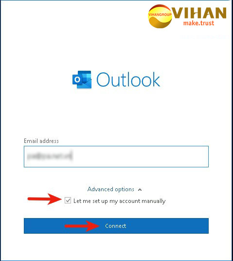 Check chọn Let me set up my account manually, chọn Connect để qua bước tiếp theo
