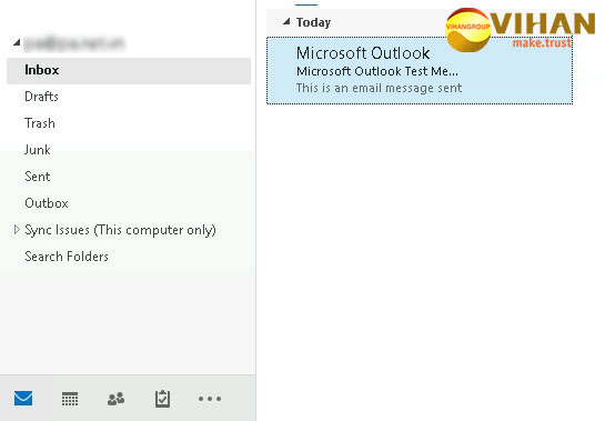 Kiểm tra lại Outlook bạn sẽ thấy 1 mail Microsoft Outlook Test Message hệ thống tự động gửi để kiểm tra cấu hình, như vậy là đã cài đặt thành công Email vào Outlook với giao thức IMAP