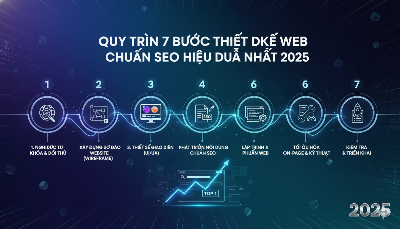 Trong kỷ nguyên số, một website không chỉ là bộ mặt thương hiệu mà còn là công cụ Marketing mạnh mẽ. Tuy nhiên, nếu website không được tối ưu SEO ngay từ giai đoạn thiết kế, nó sẽ khó có cơ hội xếp hạng trên Google. Bài viết này, các chuyên gia của VIHAN sẽ trình bày chi tiết quy trình thiết kế web chuẩn SEO 7 bước, giúp doanh nghiệp bạn xây dựng nền tảng vững chắc để đạt traffic và chuyển đổi cao.